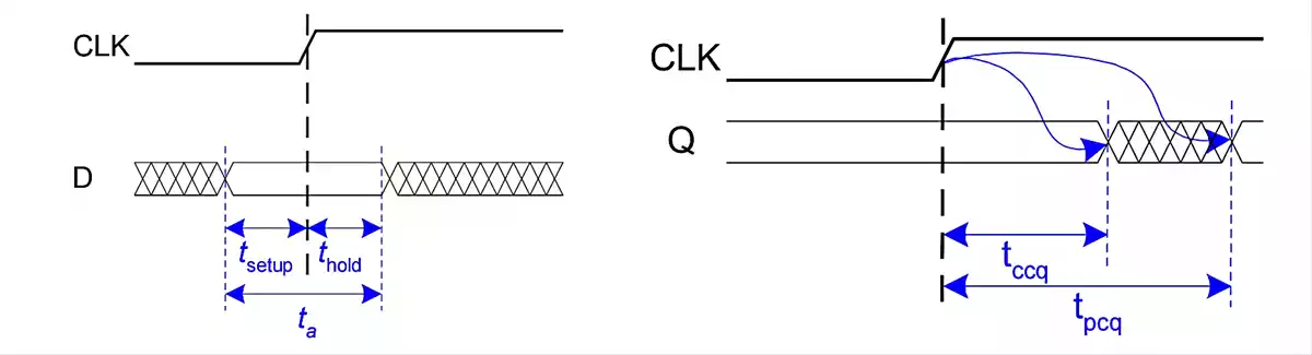 :时钟上升沿之后的 时间内数据必须是稳定的; 传播延迟