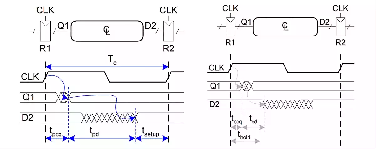 :时钟上升沿到输出端信号稳定所需要的时间; 污染延迟