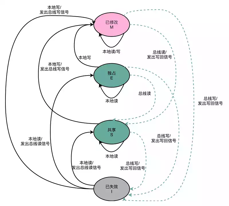 MESI 协议 对应了 Cache Line 的四种状态标记